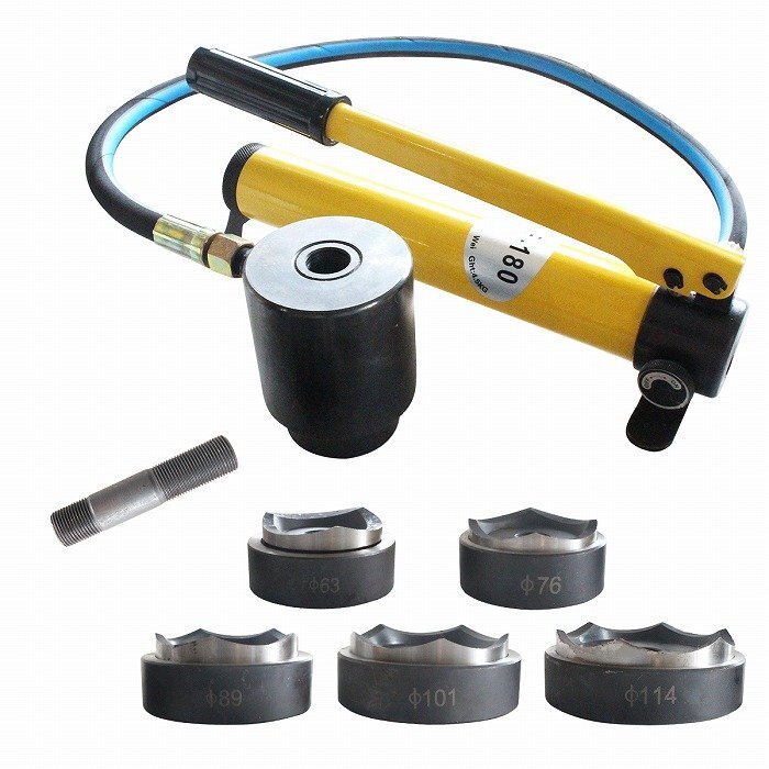 - 手動 油圧式 パンチャー 15t 油圧 ノック パンチ ホルソー 鉄板 穴あけ 工具 15トン ダイス ケース付 Φ63 76 89 101 114