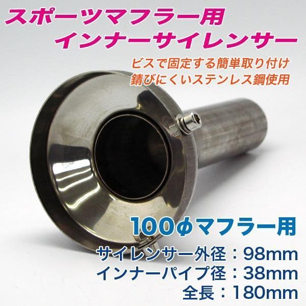 > マフラー音が静かになる マフラー音の消音や音量の調整に マフラー車検対策に 100Φ用マフラーサイレンサー 100パイ用 マフラー出口98mm用