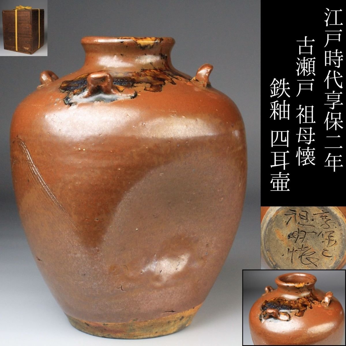 ![【LIG】江戸時代享保二年 古瀬戸 祖母懐 鉄釉 四耳壷 彫り名 時代箱 古美術品 旧家収蔵品[.Y]25.09拍卖](http://yahooimg2.ymibuy.cn/i/auctions.c.yimg.jp/images.auctions.yahoo.co.jp/image/dr000/auc0111/user/ce981f87dce238463c4da94d0e3b4031f42f639212f739e2aa811a9ac1d5c45e/i-img1200x1200-17637043737163nfrqxk267920.jpg)