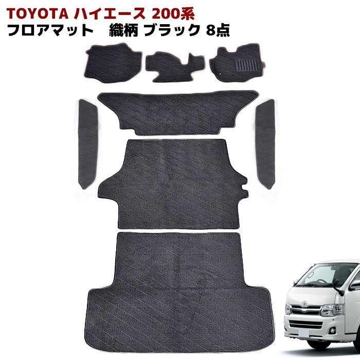 > 200系 ハイエース 標準 S-GL 1型 2型 3型 フロアマット 織柄 ブラック 8点 フルセット 新品 フロント リア 荷室 ステップ トヨタ