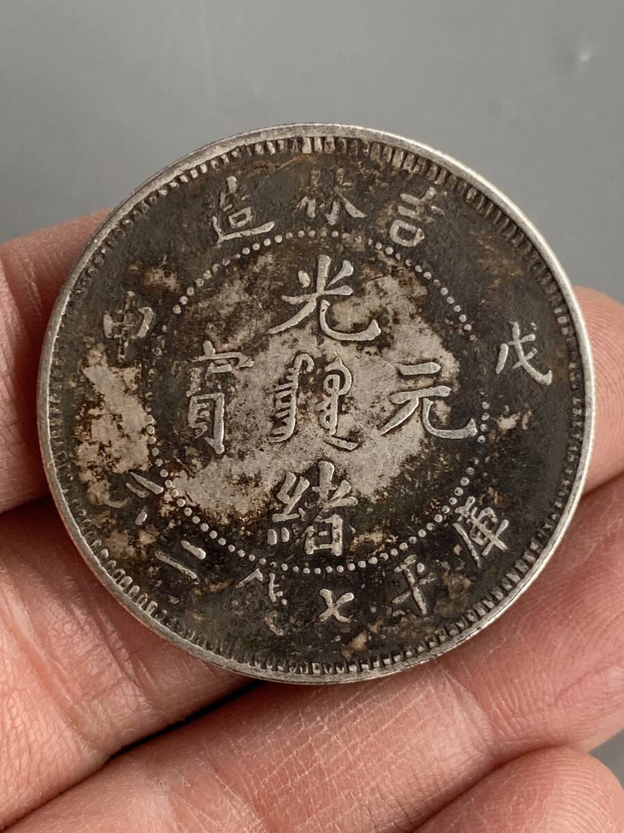 - 旧蔵 純銀彫 光緒元寶 吉林造 庫平七錢二分 銀元 銀貨 銀幣 中国古玩 骨董品 時代物 稀少唐物