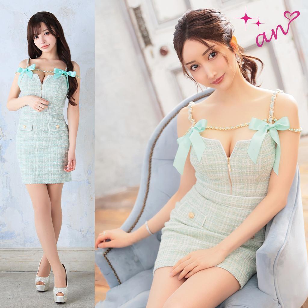 - an アン リボン ショルダーチェーン ツイードタイトミニドレス ミント