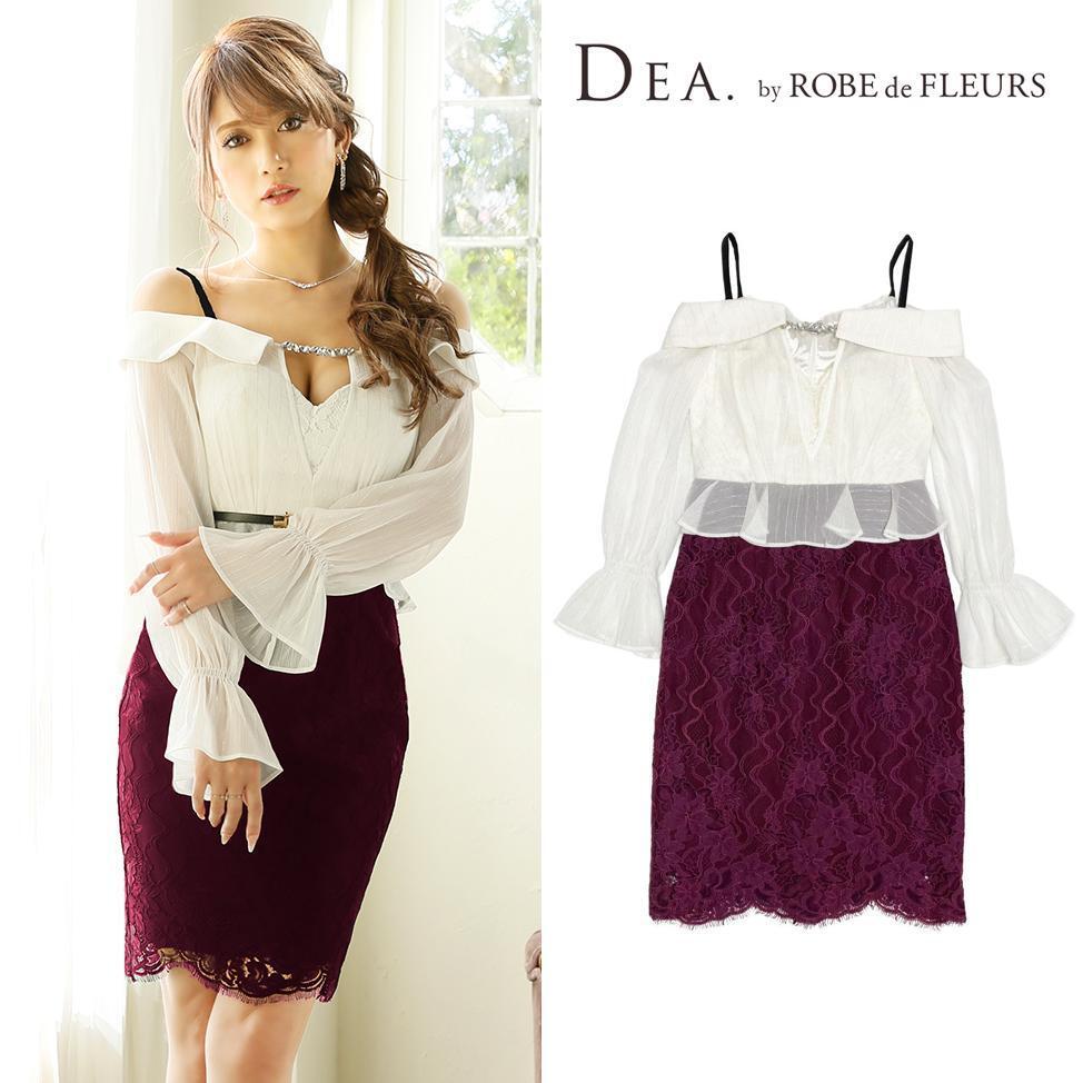 - DEA. by ROBE de FLEURS ディア バイ ローブドフルール 襟抜きデザイン×ロングスリーブタイトミニドレス DE1802