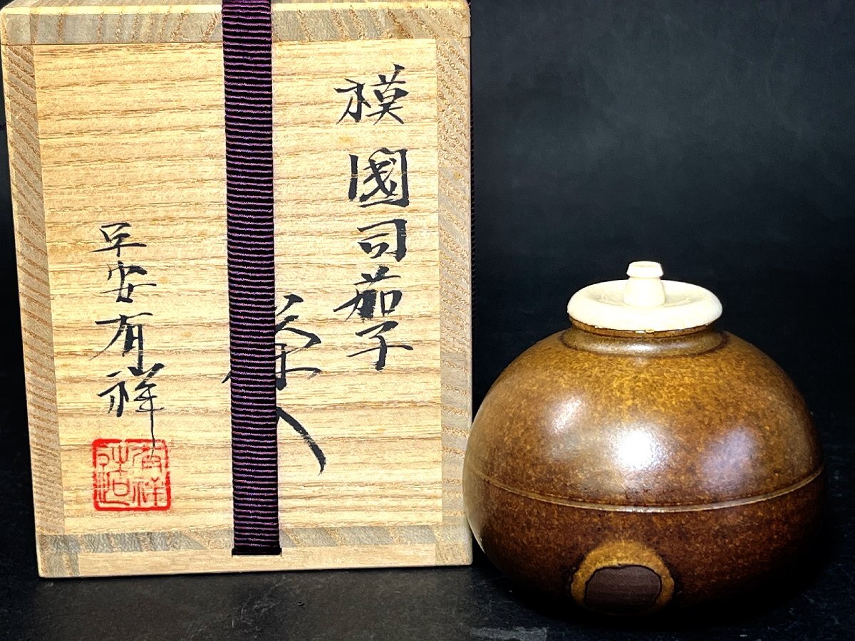 - 笹田有祥 模 国司茄子 茶入 唐物大名物 栞 共箱 外箱 茶道具