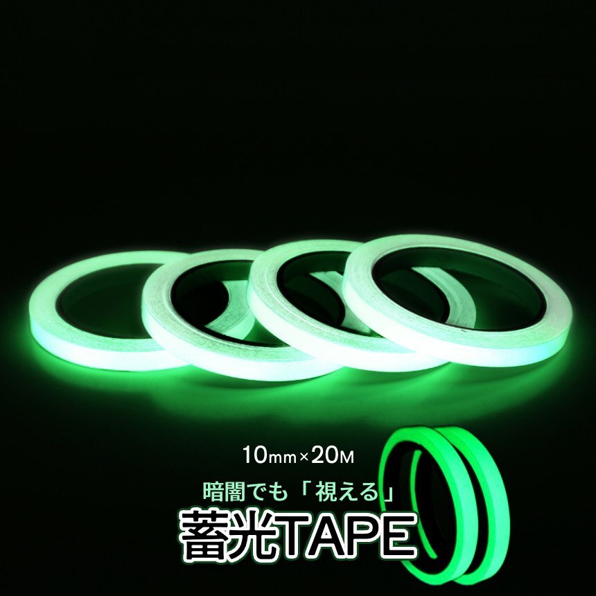 - 蓄光テープ 10mm 20m 光る 蛍光テープ グロー 蓄光 蛍光 長時間発光 階段 自転車 非常用 夜間 太陽光 人工光 暗闇 夜間目印 CHITAPE-10-2