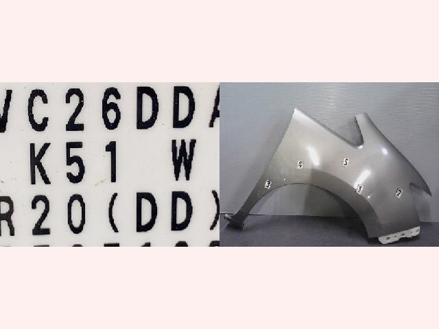 > 5kurudepa H23年 セレナ DBA-C26 右 フロント フェンダー シルバー K51 HC26 HFC26 FC26 2WD 33167