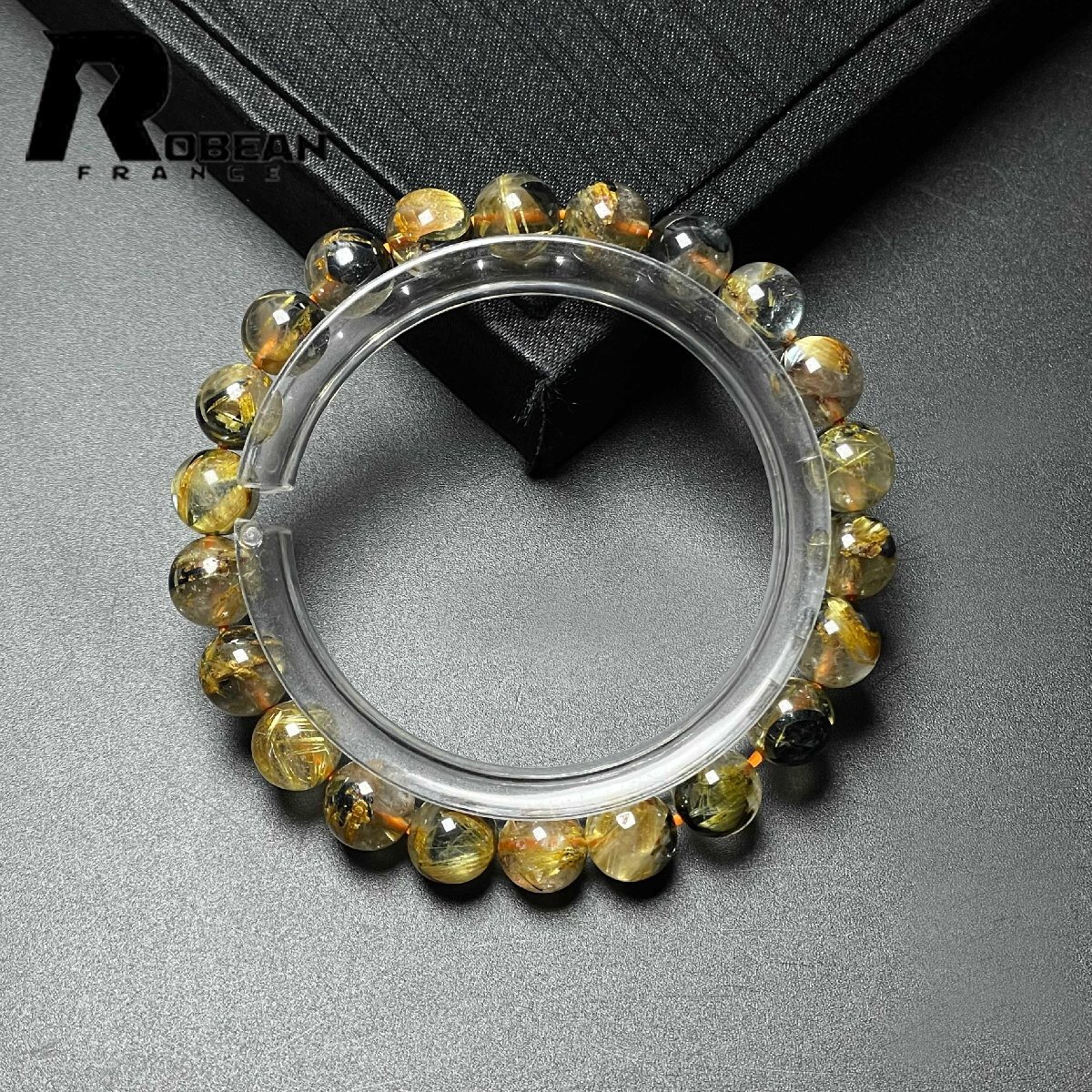 > 綺麗 EU製 定価11万円★ROBEAN・太陽花タイチンルチル★黄金針水晶 金運 開運 ゴールド ブレスレット パワーストーン 8.3-8.7mm M1027860