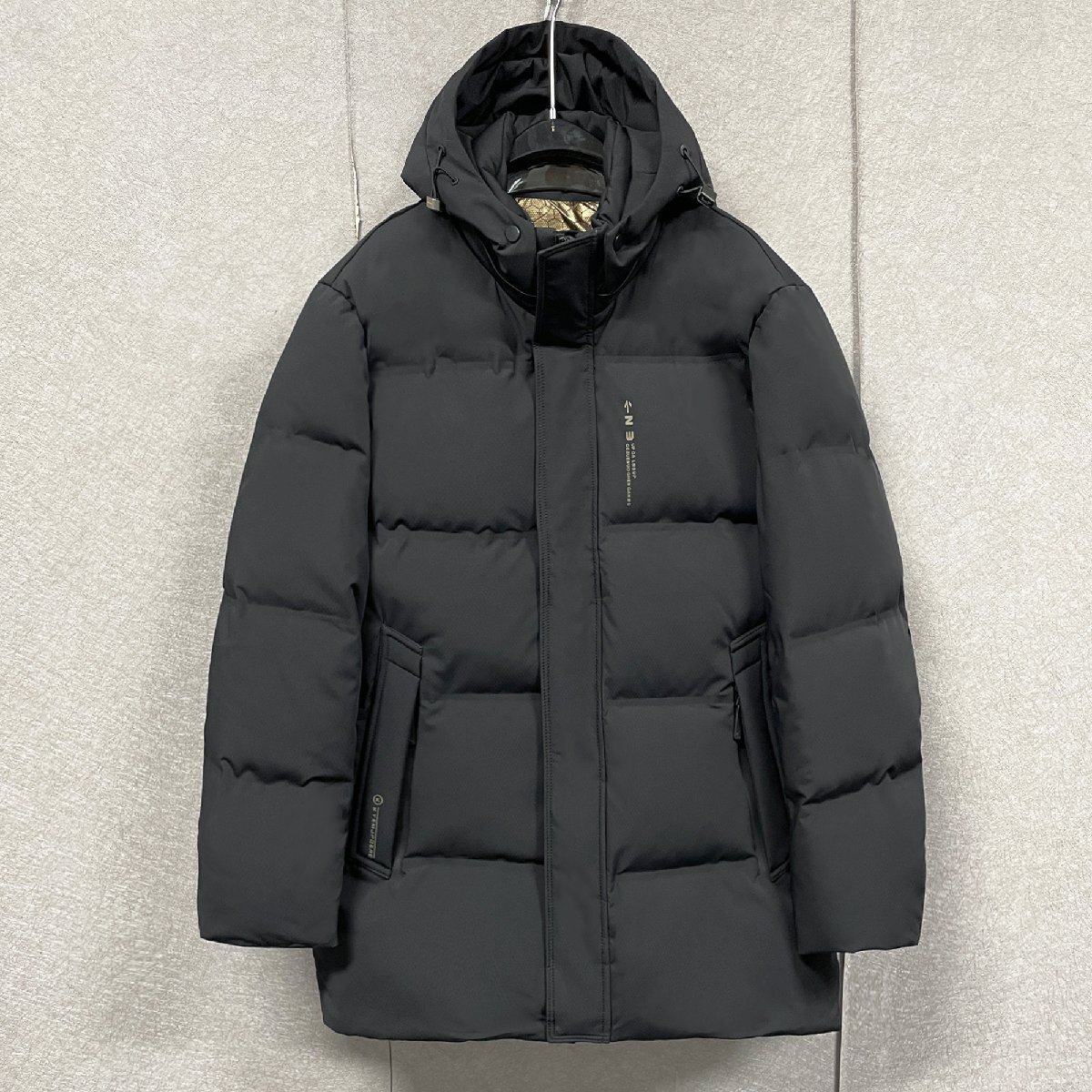 > ダウンジャケット イタリア製造 ダックダウン90% 防寒 撥水 保温 ソフト 無地 カジュアル フード付き アウター ビジネス 紳士 SIZE:L