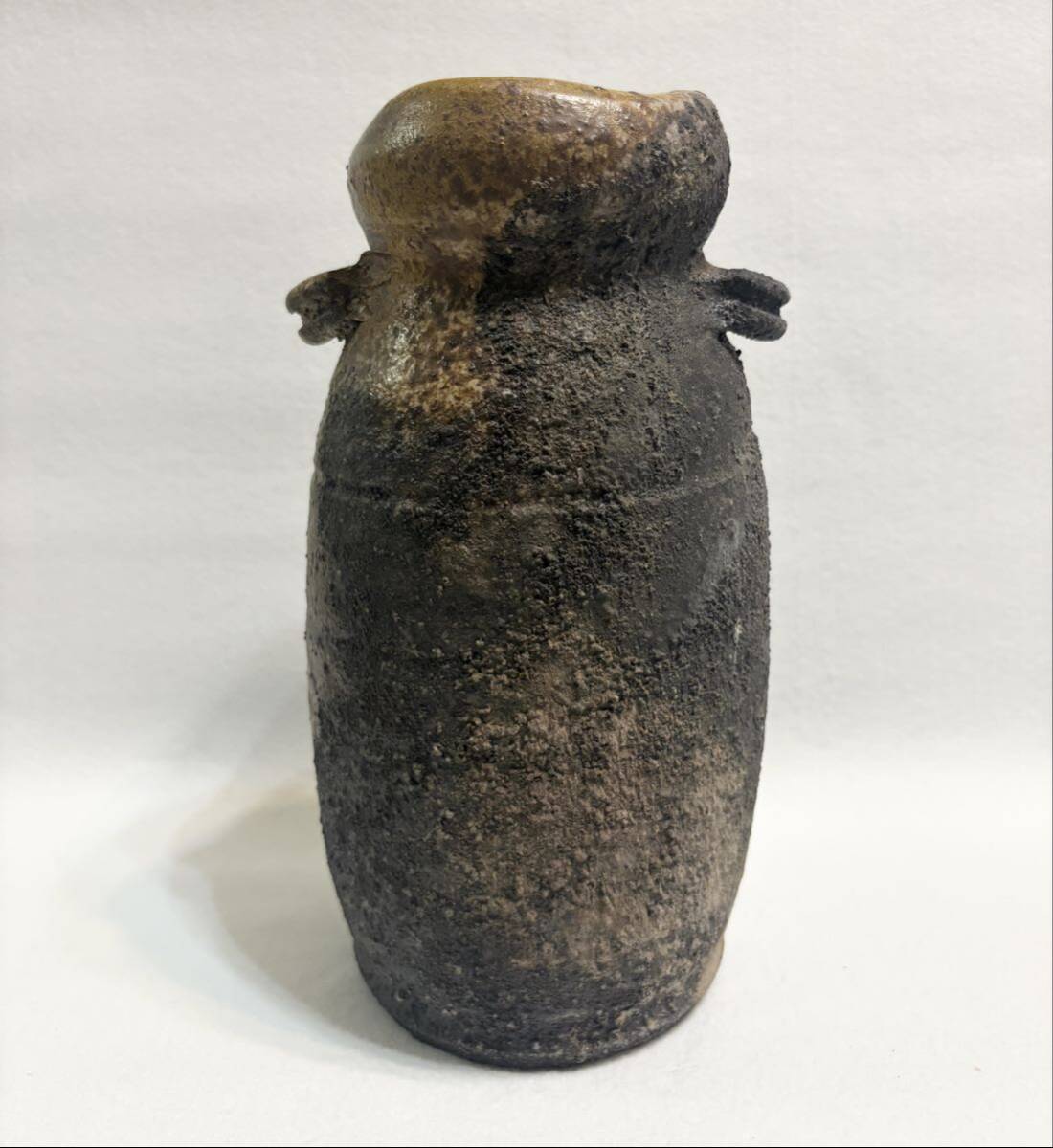 - 備前焼 作家物 花瓶 花入 荒焼 薪窯 自然釉 胡麻 灰被り 火色 耳付 花器 古陶 伝統工芸 陶芸 日本陶磁器 Bizen vase woodfired