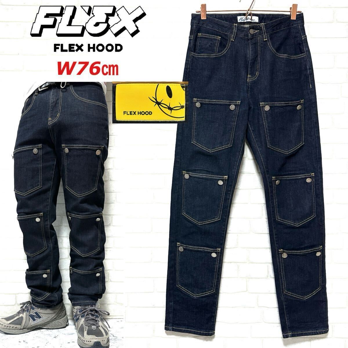 - FLEX HOOD Smiley Denim マルチポケット 濃紺 デニムパンツ