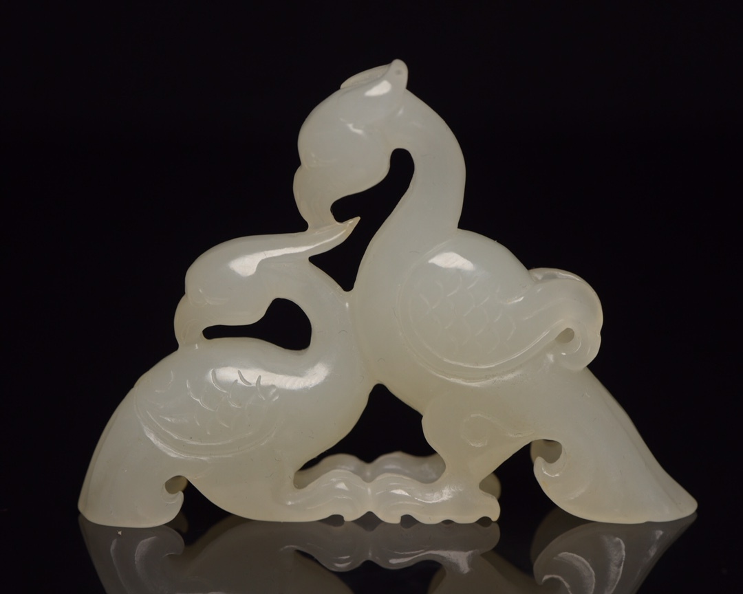 - 旧蔵 和田玉彫 鳳鳥 根付 中国古玩 骨董品 時代物 稀少唐物