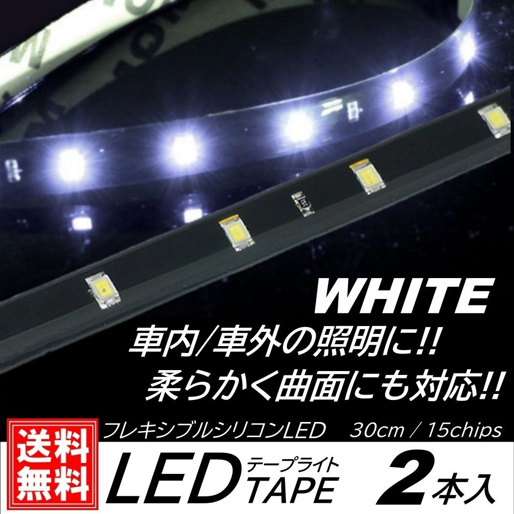 > ホワイト LEDテープライト 防水仕様 30cm 15SMD カット可能 正面発光 発光色選択 ブラックベース LEDイルミネーション 2本入 デイライト
