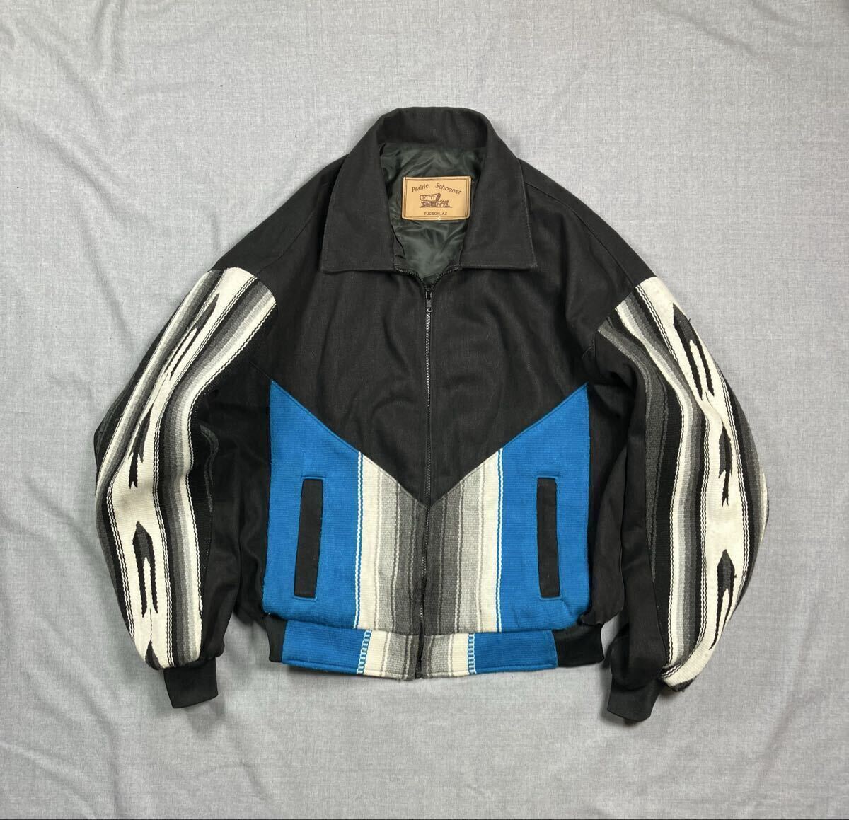 > 80s 90s ビンテージ ネイティブ ジャガード ブランケット ダック ジャケット 背面刺繍 黒 白 チマヨ カントリー ウェスタン サンタフェ