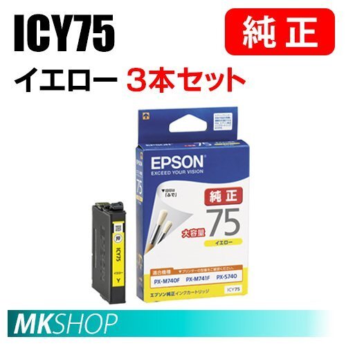 - EPSON 純正 インクカートリッジ ICY75 イエロー 大容量 3本セット (PX-M740F/M740FC6/M740FC7/M740FC8/M41F)
