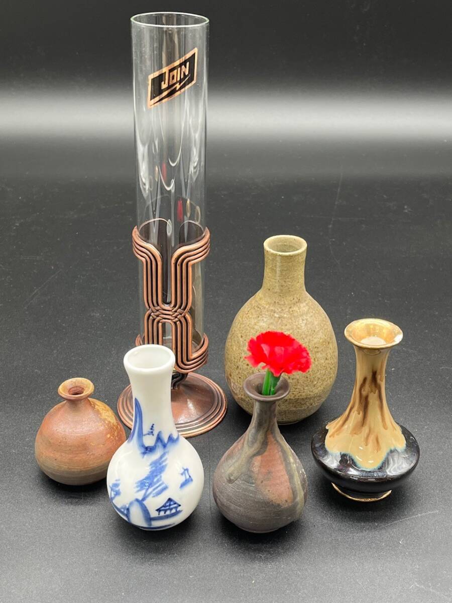 - 一輪挿し 6点 在銘 染付 備前焼 JOINDER ジョワンドル 一輪挿 華道 茶道 花生 花入 小壺 華器 陶磁製一輪挿 (20327)