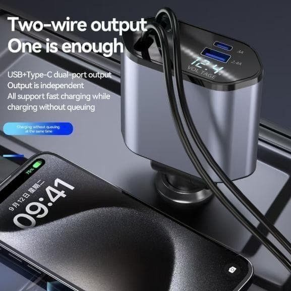 - シガーソケット USB カーチャージャ 急速充電 typeC Lightning