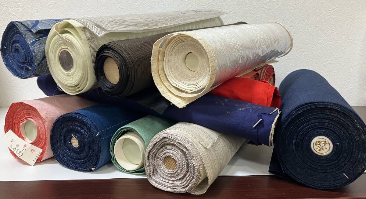 - 【29707】反物 秘蔵極鮫小紋 ずいほう織 ボラ―上布 紺 白 赤 など 反物まとめ売り 羽尺 和服素材 現状品 中古品