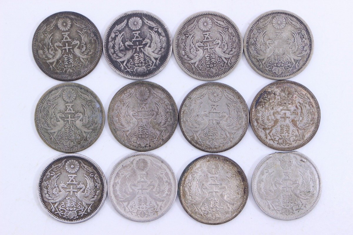 > 50銭 銀貨 小型鳳凰五十銭 総重量58.92g 小丸 大正 昭和 日本古銭 硬貨 12枚 まとめ 現状品 11-L020/1/60L