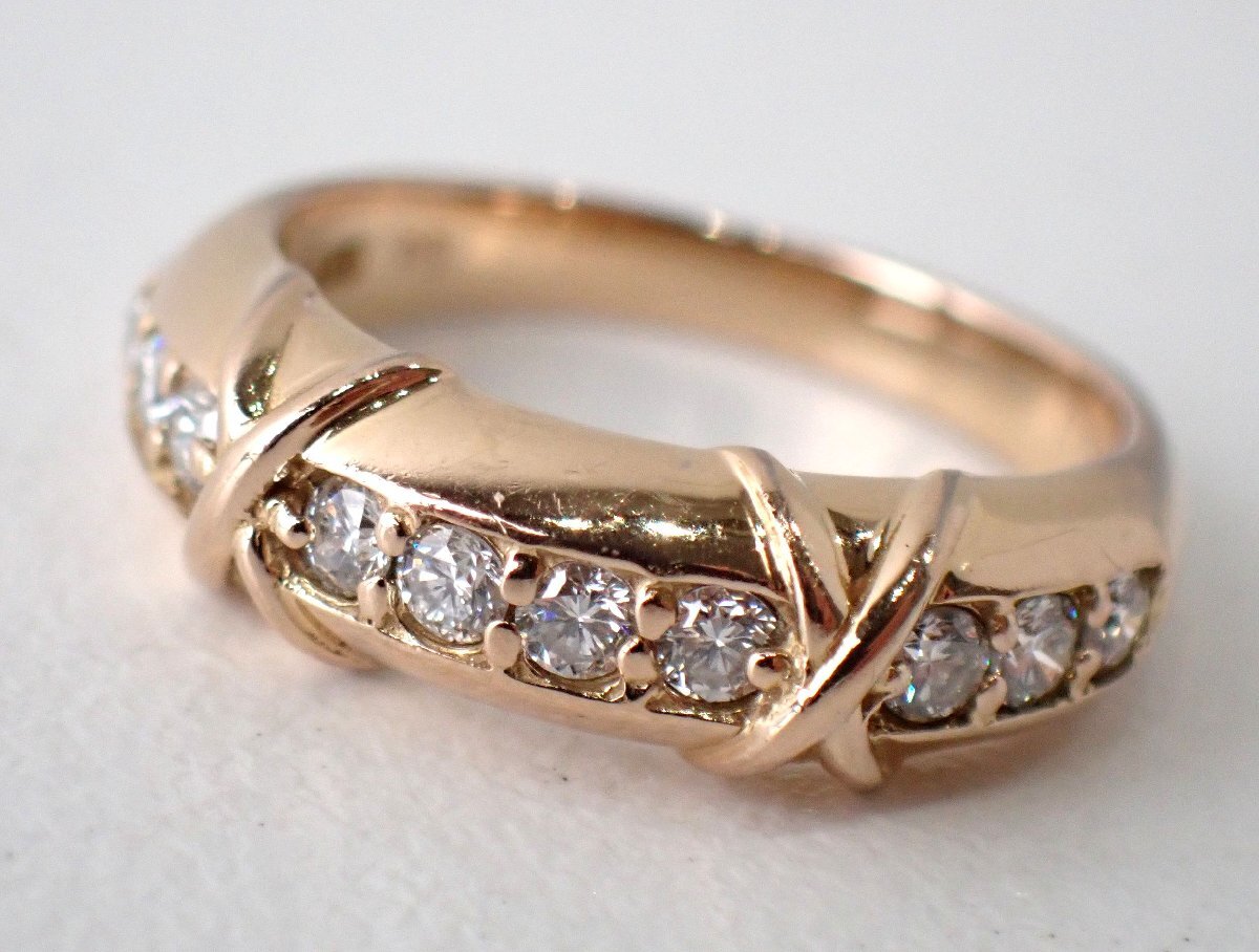 - 美品 ポンテヴェキオ K18PG 18金 D0.3ctクロス ハーフダイヤリング エタニティ リング ハーフ ダイヤモンド 6号 3.7g 21073639