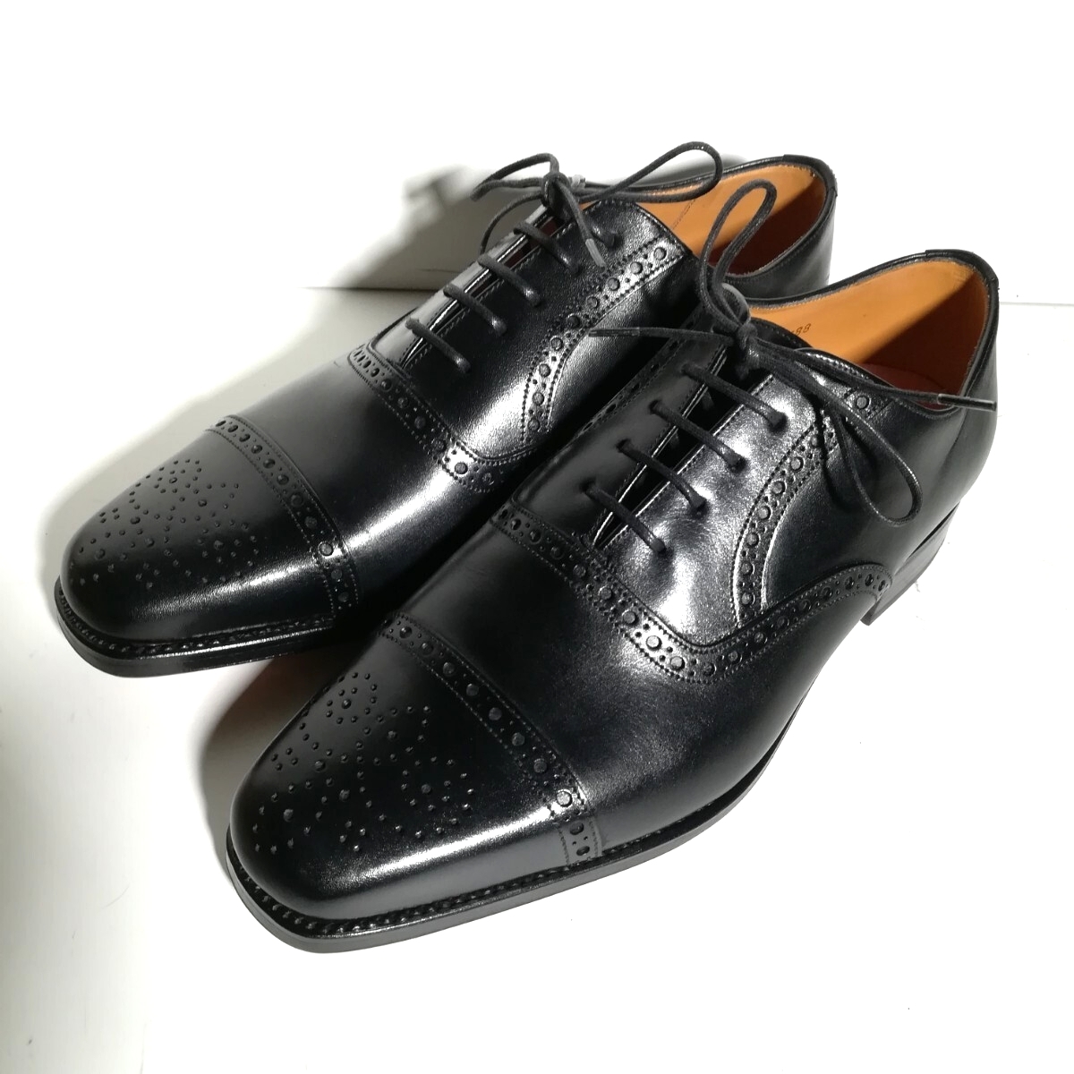 - d0319 【新品同様・試着程度】 スペイン製 ★ヤンコ YANKO★ セミブローグ 6 黒 ブラック ドレスシューズ ビジネス 高級革靴 紳士靴 本革