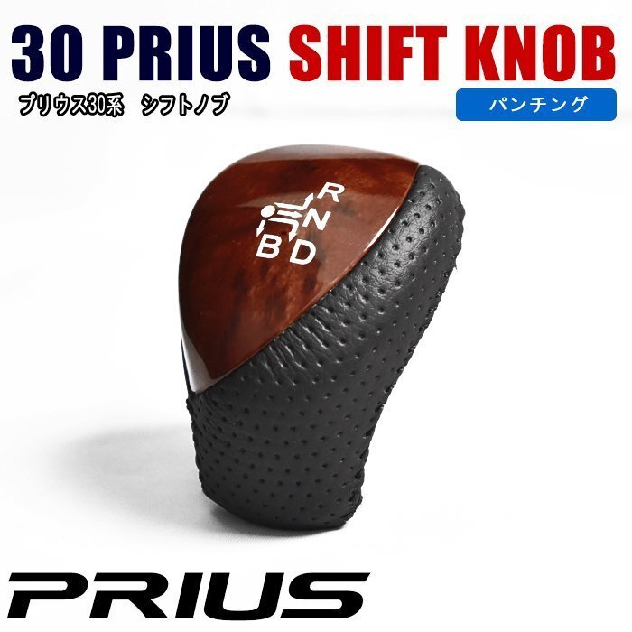 - ZVW 30 プリウス 印字 付き 茶木目 シフトノブ 本革調 PVC レザー 使用 新品