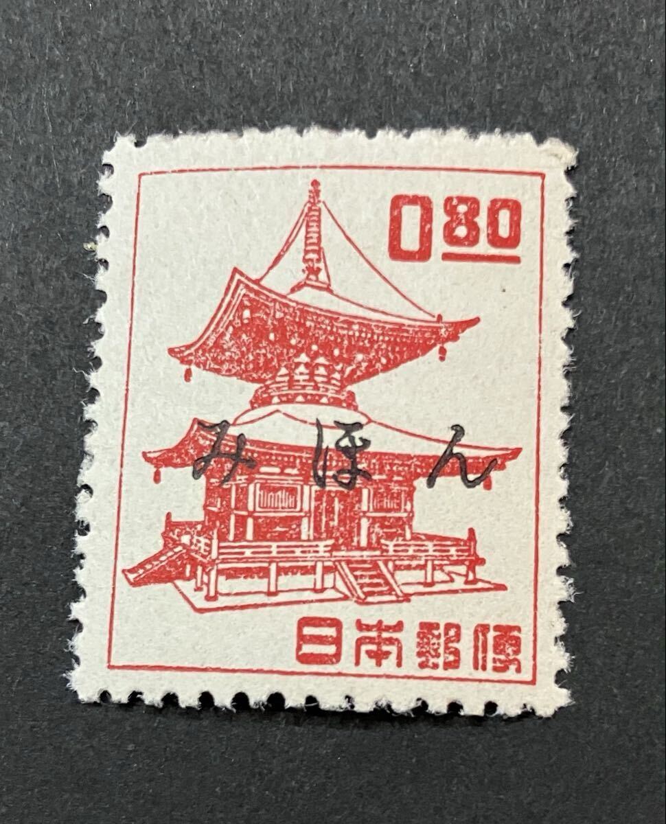 - [みほん]第1次動植物国宝切手 石山寺多宝塔 0.80円 みほん字入