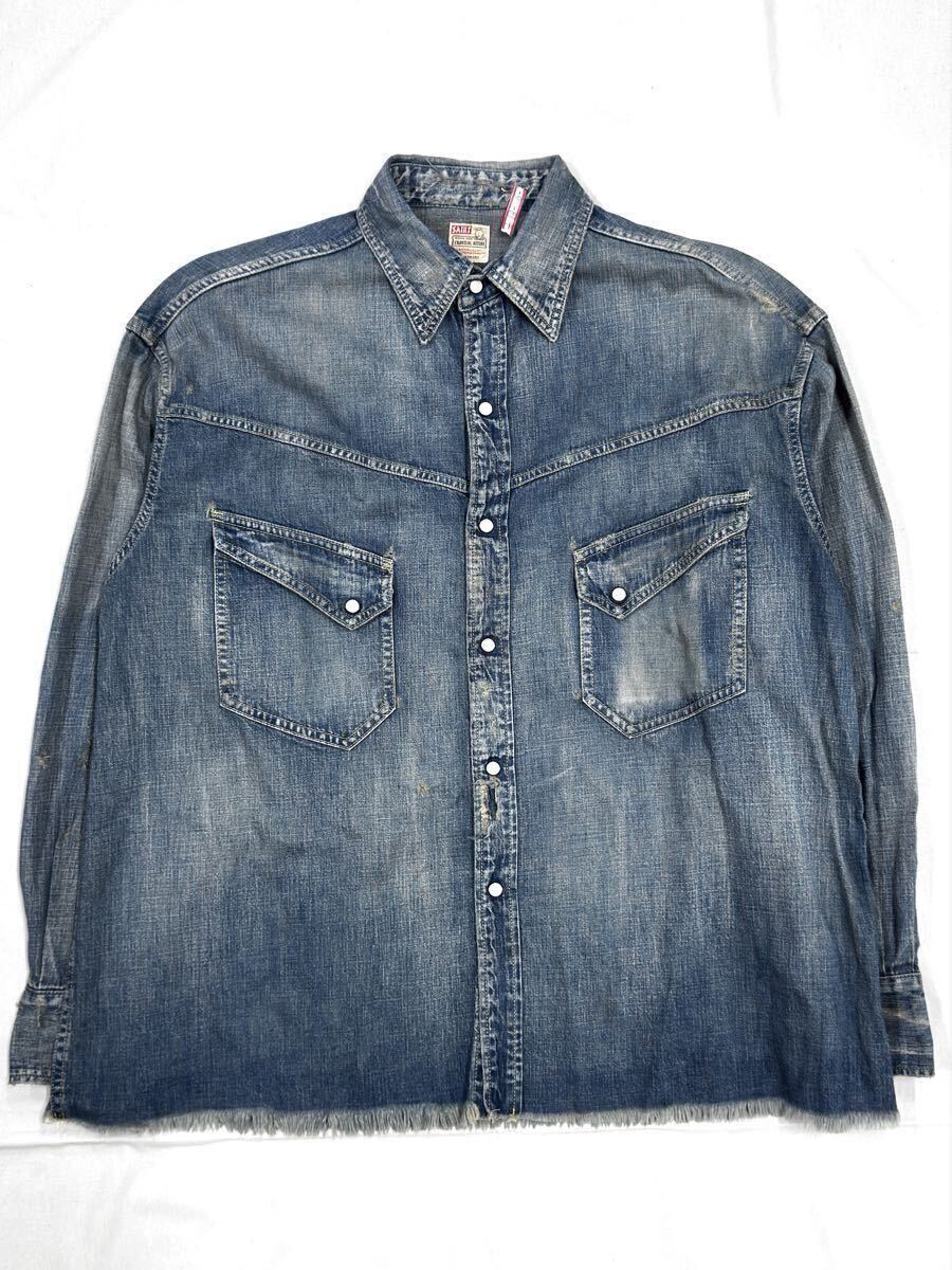 - SAINT MICHAEL M×××××× DENIM SHIRT セント マイケル ビンテージ加工 デニムシャツ SM—A23-0000-015 インディゴ Mサイズ