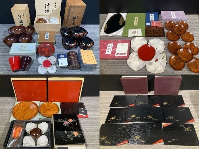 Y4296M 漆器 山中塗 桜皮細工 象彦 鎌倉彫 津軽塗 たち吉 木製 他 お椀 お盆 茶托 文庫 箱 まとめ拍卖