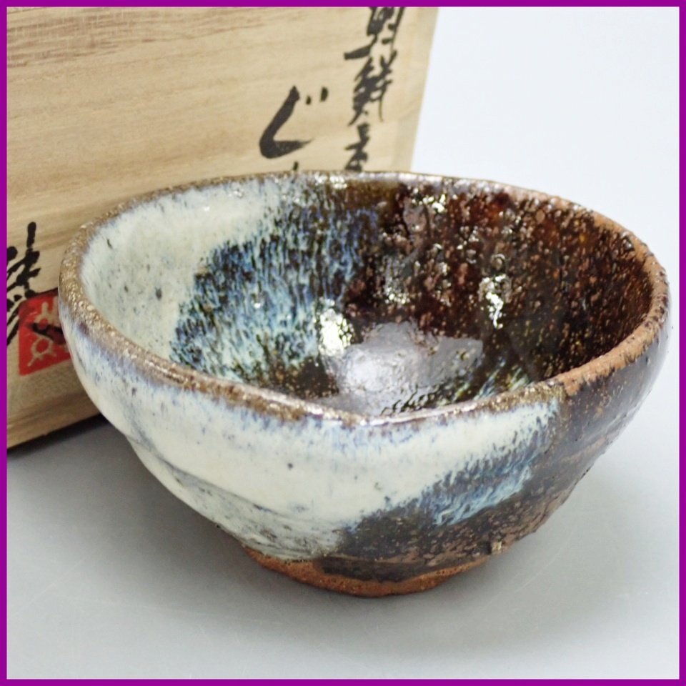 > □未使用 鶴田純久 朝鮮唐津 ぐい呑 共箱・共布・栞付き/陶器/酒器/酒盃/猪口/陶芸/焼き物/作家物/和食器&2166600027