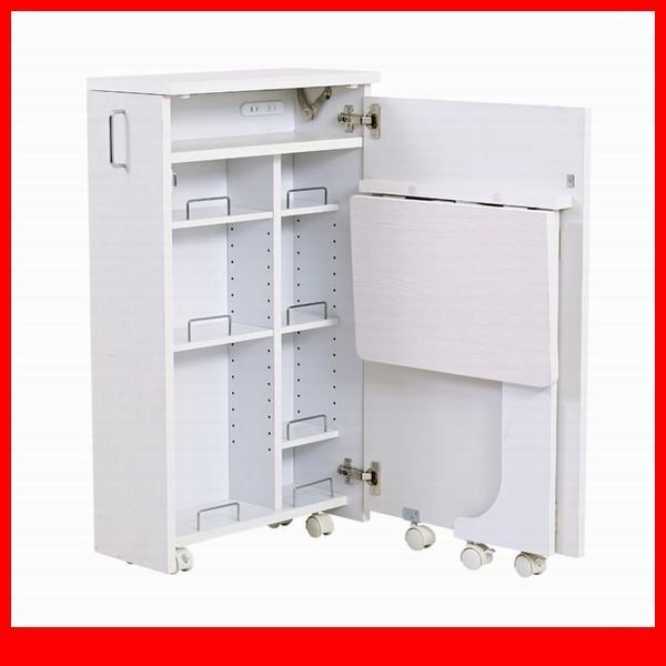 > 鏡台 机★新品/折りたたみデスク&ドレッサー/コンパクト キャスター コンセント 可動棚 背面化粧/木目調 ツートーン/ホワイト 白家具/a4