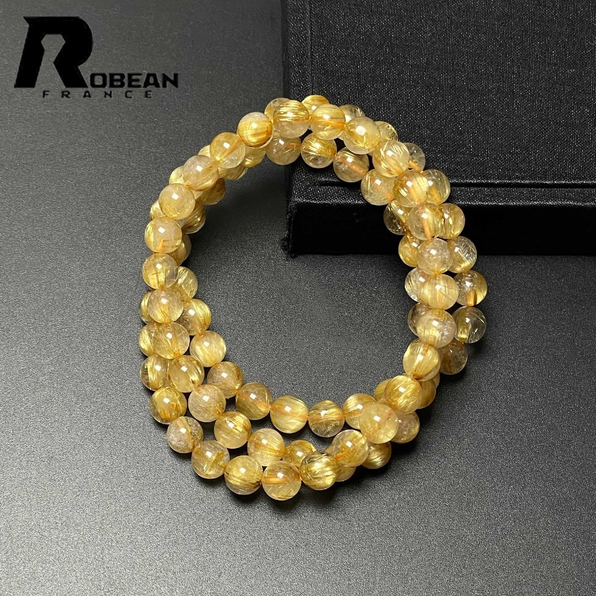 > 絶賛 EU製 定価14万円★ROBEAN・タイチンルチル★黄金針水晶 ゴールド 金運 開運 3本巻きブレスレット パワーストーン 6.8-7.2mm M081193