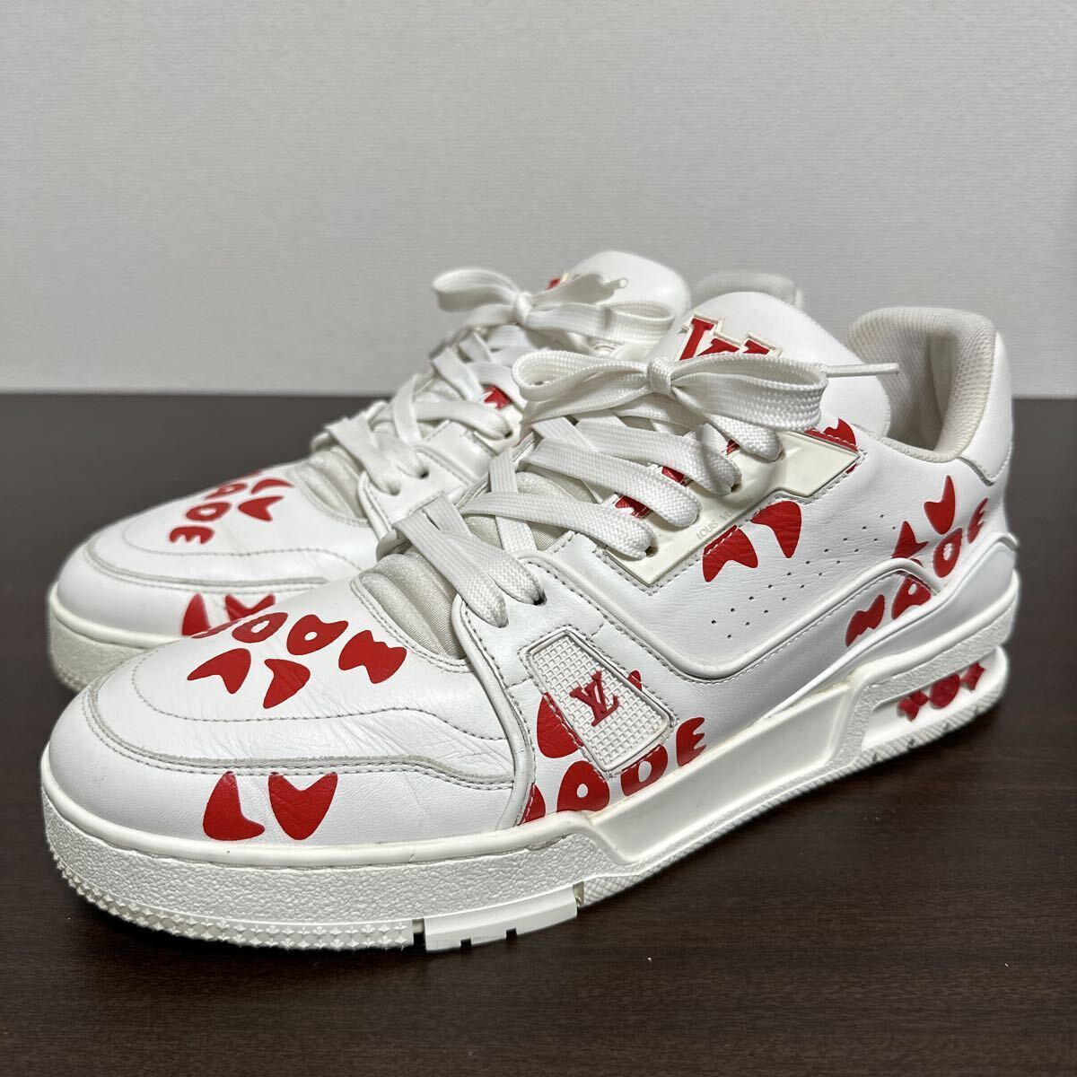 > 【美品】LOUIS VUITTON ルイヴィトン NIGO LVトレイナーライン レザー スニーカー size 6 1/2 ホワイト×レッド
