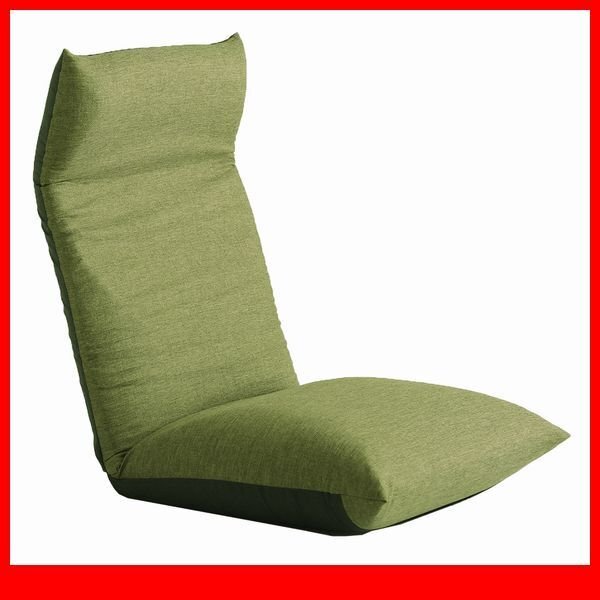 > 座椅子★14段階リクライニングポケットコイル入り座椅子/日本製 完成品 布地/ソファのような座り心地/フラット~二つ折り/グリーン/a3