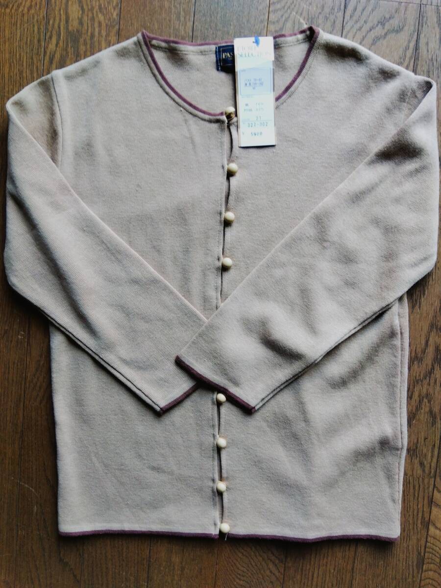- 新品未使用◆Etoile Selection ベージュ×ボルドーバイピング 7分袖 カーディガン◆定価:5,900円