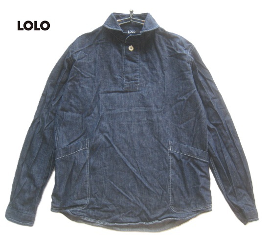 - 美品日本製!!ロロ LOLO*丸襟 プルオーバー インディゴデニムシャツ M 紺