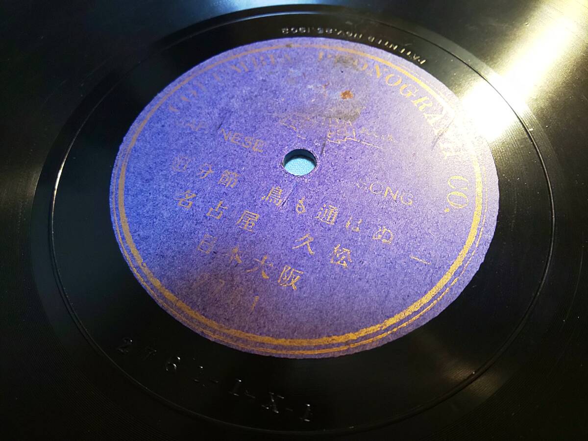 - ⑨●明治時代出張録音片面SPレコード 「追分節 鳥も通はぬ」 名古屋 久松 民謡俚謡 3センチひび 2761-1-1-X-1