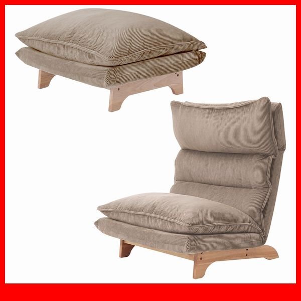 > ソファ★新品/脚付きリクライニングローソファ 1人掛け+オットマン/ハイバック ワイド 日本製 完成品/コーデュロイ ベージュ/a1