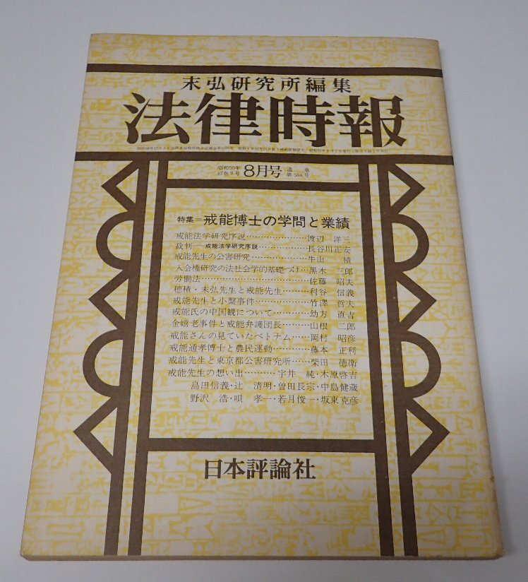 ●「法律時報 第569号 1975年8月 第47号巻9号 戒能博士の学問と業績」 末弘研究所 日本評論社