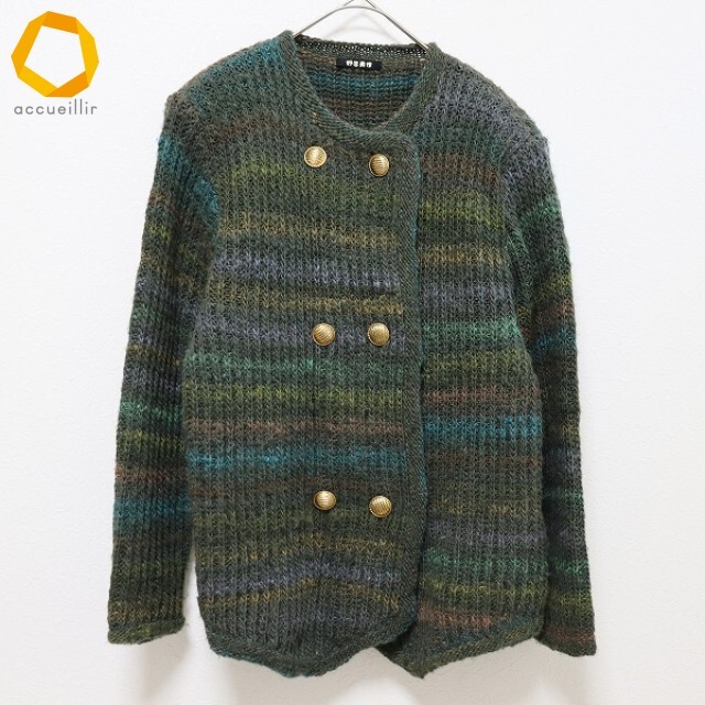 ◎商品名(タイトル):野呂英作 ヴィンテージ ニット カーディガン ノーカラー ジャケット 金釦 [w942137n]◎ブランド名:野呂英作◎アイテム名:ニット カーディガン ジャケット◎サイズ:-◎性別:レディース◎カラー:濃いグリーン系 ミックス◎素材:表記なし◎実寸サイズ:肩幅約 42cm・袖丈約 57cm・着丈約 57cm・胸囲約 48cm×2◎商品コメント:★当店の商品はすべてリユースアイテムとなります。特質上、些細なダメージは記載しておりませんので着用に問題のない使用感、着古した雰囲気などはご了承くださいませ。◎コンディションレベル:目立った傷や汚れなし◎コンディション備考:-キーワード/アクイール/古着/used/ビンテージ/ヴィンテージ/レトロ/昭和/ニットカーデ/ニットカーディガン/ニットジャケット/金ボタン/ノーカラージャケット
