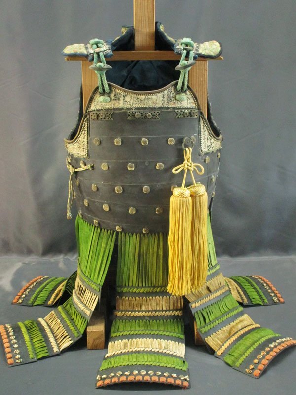 > 4336 【甲冑】 鉄地 黒塗 鎧胴/当世具足 毛引威 胴鎧 二枚胴 等身大 武具 具足 鎧 武装 時代武具