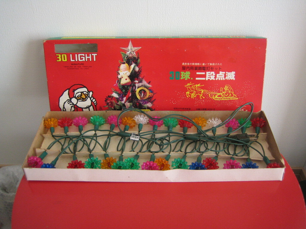 - 昭和レトロ 未使用 動作確認済 ☆ 室内用 100V カラー花笠付き ガラス製 ペッパー球 30球 クリスマスツリー電飾 ☆ 当時物