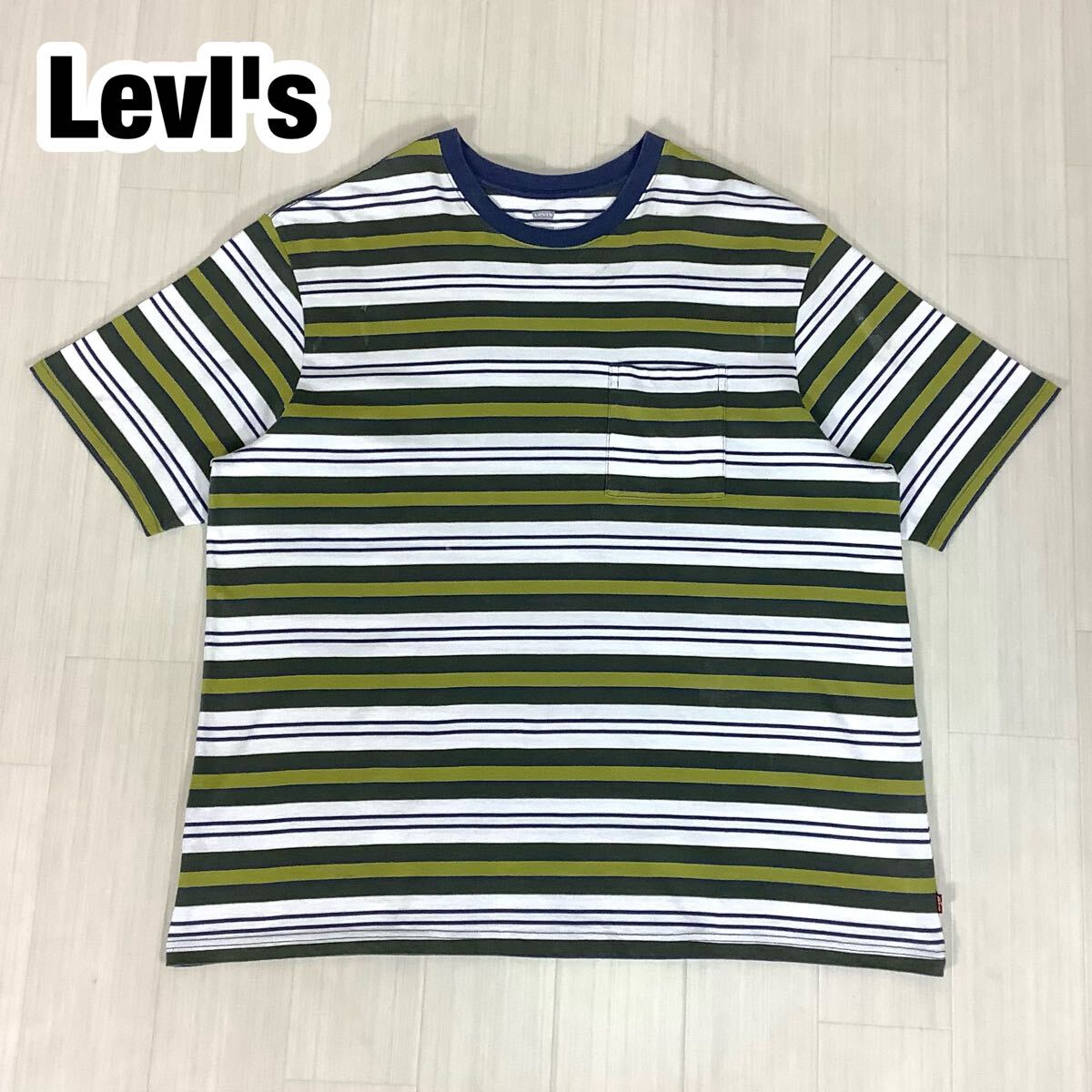 - LevI's リーバイス マルチボーダー 半袖Tシャツ L 胸ポケット