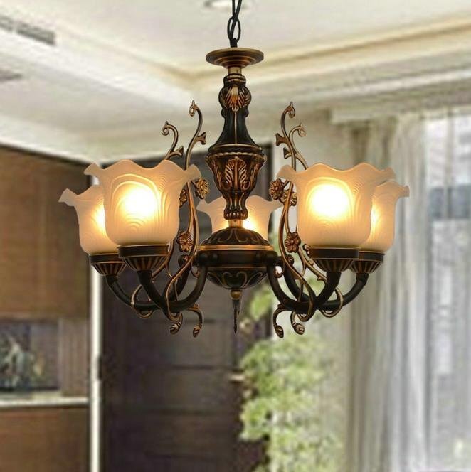 - 極美品★ 古美色 ハンドペイントシーリングシャンデリア 5灯