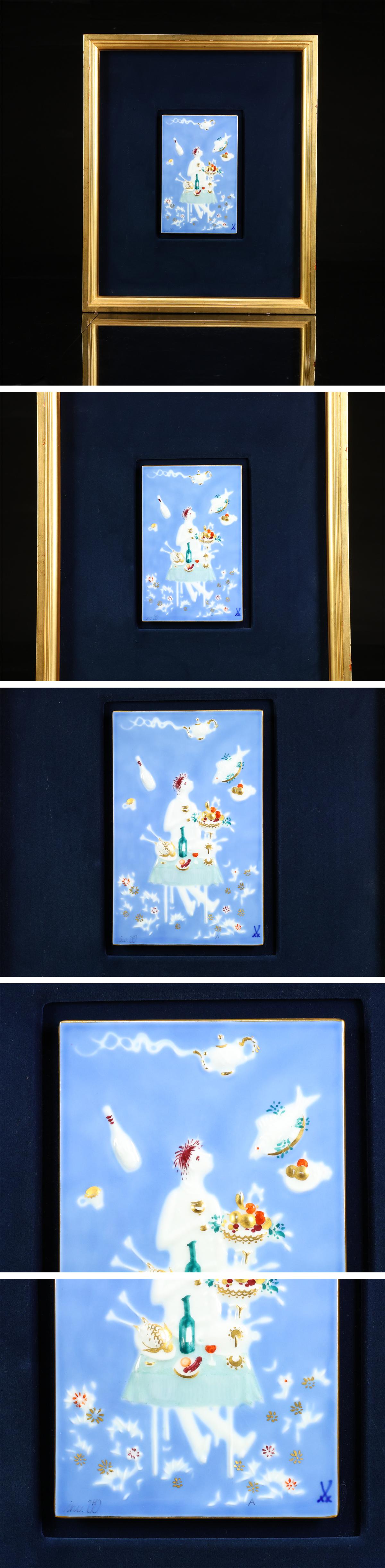 > 【吉】BA947 MEISSEN 【マイセン】 千夜一夜 陶板画 額装 額サイズ31.5×26.5㎝/美品N!