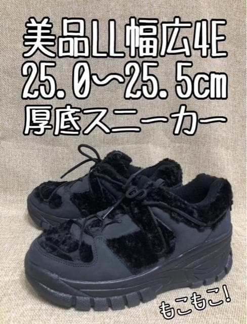 - 美品☆LL25~25.5cm幅広4E黒系♪厚底スニーカー♪ボアかわいい☆z658