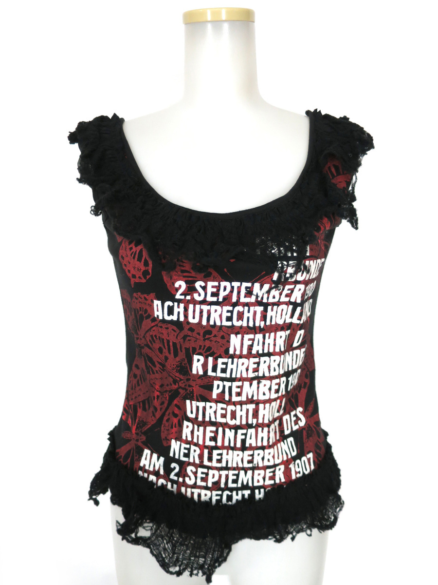 - h.NAOTO 蝶&英字プリント半袖カットソー / エイチナオト [B71699]