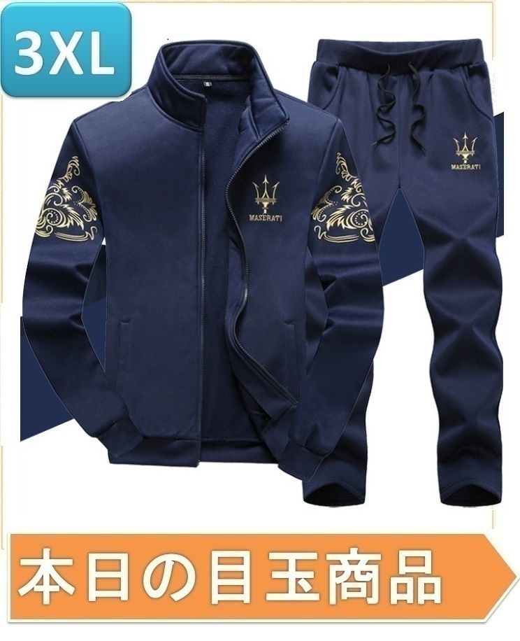 - 【今日の目玉】メンズセットアップ 上下セット ☆196 ネイビー 3XLサイズ ジャージ スウェット お兄系 部屋着 おしゃれ