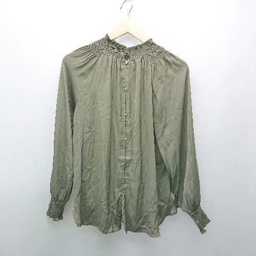 > ◇ NOLLEY'S モックネック フロントボタン 透け感なし 袖口ゴム 長袖 ブラウス サイズ38 カーキー レディース E