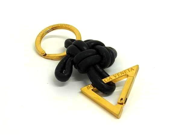 > 1円 BOTTEGA VENETA ボッテガヴェネタ キーリング キーホルダー バッグチャーム メンズ レディース ブラック系×ゴールド系 FU7853