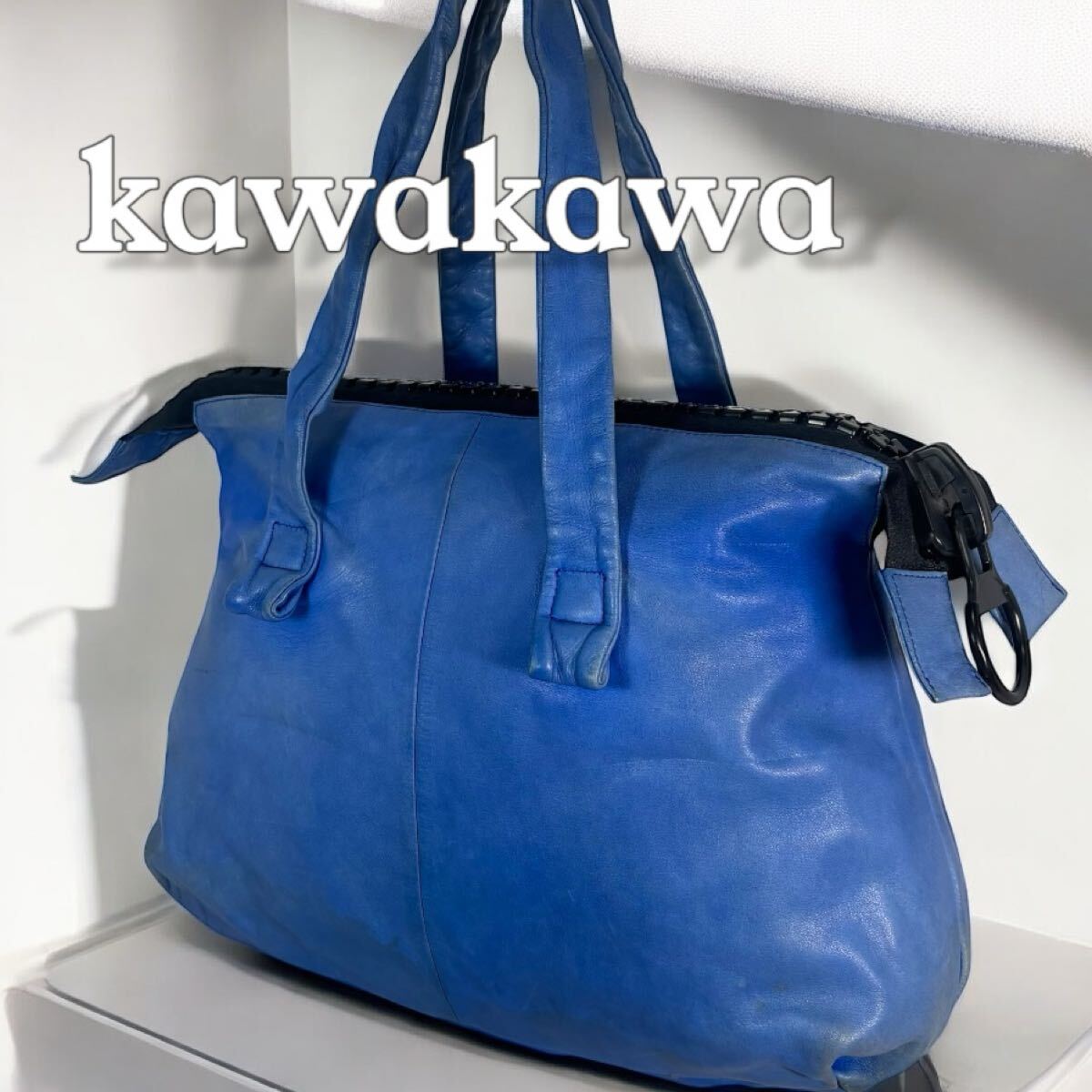 - 希少カラー kawakawa カワカワ レディース メンズ トートバッグ 鞄 レザー 本革 ブルー 青 肩掛け 25bis ビッグファスナー デカファスナー